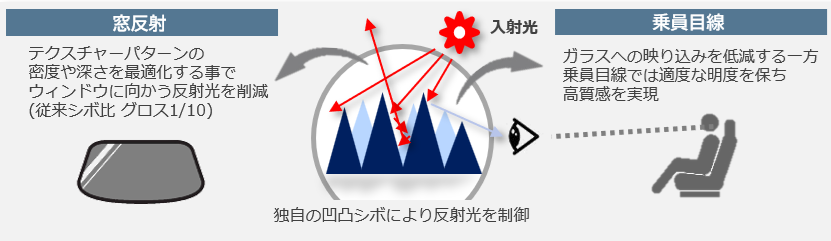 ウィンドウガラスへの反射低減と高質感を両立するテクスチャー開発